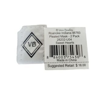Vera Bradley 2 Pack Pleated Face Masks Sweet Hearts NWT Sealed Adult Size With Adjustable Elastic (non medical)