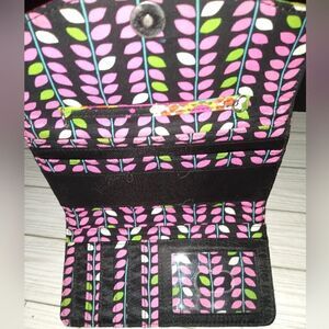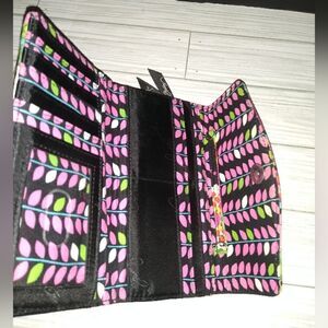 Vera Bradley Euro Wallet Tri-Fold Black with Colorful Flowers Retro Floral