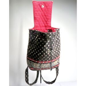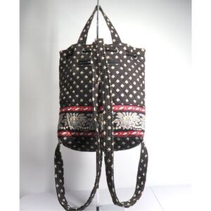 Vera Bradley MIMI Backpack Floral Black Red Retired Pattern Cotton Drawstring