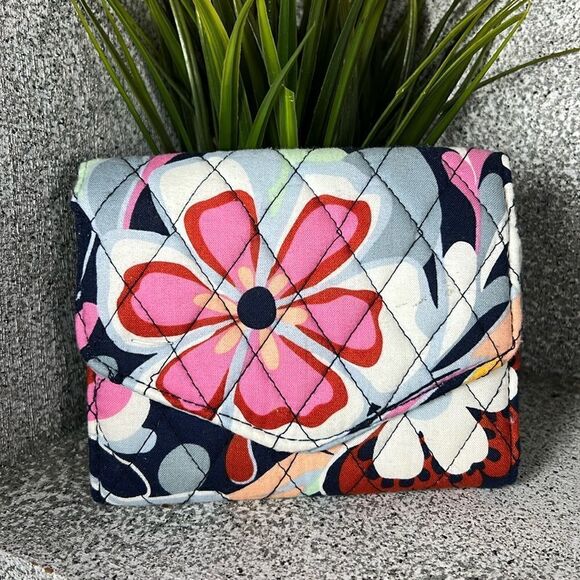 Vera Bradley RFID Mini Tri-Fold Wallet Mod Paisley Blue Floral