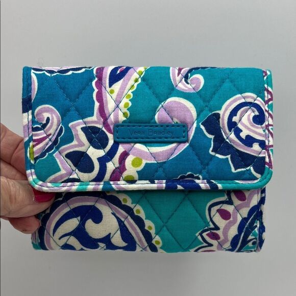 Vera Bradley Waikiki Paisley Teal and Purple Quilted Wallet