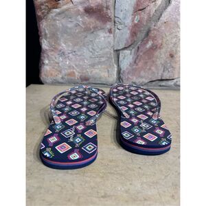 Vera Bradley Women's Size 10 Navy Blue Print Design Thongs Flip Flop Sandals