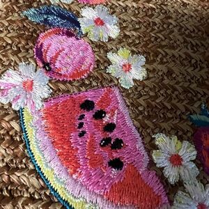 Brand new with tags! Straw with embroidered design. Please see pictures for measurements