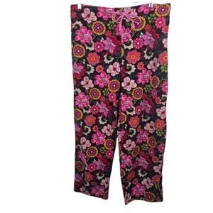 Vera Bradly Floral Corduroy Lightweight Lounge Pants Brown Pink Straight Leg M
