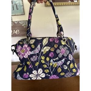 Vera Bradly Purple Yellow Cotton Handle Floral Quilted Purse. Zip Closure.