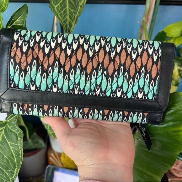 Vera Bradly Sierra Stream Trifold Wallet this pattern its retired measurements 4.5 x8.5 in good, pretty love conditions a few tiny flowers on the corner as suspected this purse is vintage retire pattern