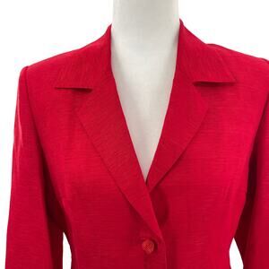 Vera Cristina Red Silk Linen Two Button Career Classic Blazer Women Sz S