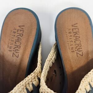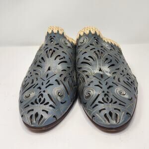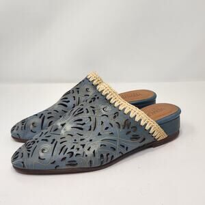 Vera Cruz Women Olivette Teal Blue Leather Wedge Mule Size 38 US 75 Slip On Boho