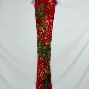 Vera Ibiza Silk Red Scarf With Gold and Green Leaves 52" Long