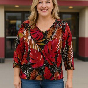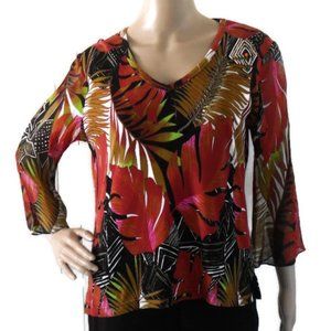 - Knit Top With Sheer 3/4 Sleeves That Are Flared
