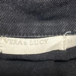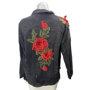Vera & Lucy Black Floral Embroidered Button Down Distressed Denim Jeans Jacket M