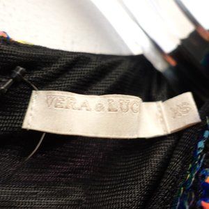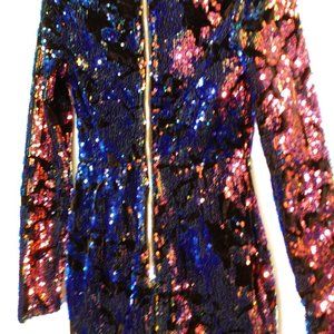 Vera Lucy Dress XS Mini Bodycon Sequin Allover Colorful Sparkle Party Copper