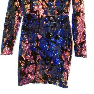 Vera Lucy Dress XS Mini Bodycon V- Neck Sequin Allover Colorful Sparkle Party Copper Club Dress Glam Club