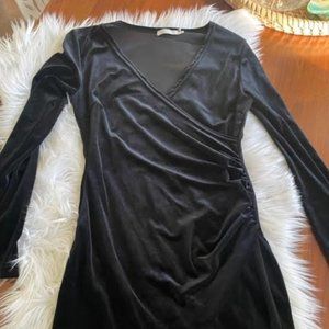 Gorgeous Vera & Lucy velvet mini dress in excellent, never-worn condition (no tags). Features a deep surplice V-neckline, long sleeves, ruched side detailing, and a flattering wrap style. Lined, mini silhouette in soft velvet. Perfect for holiday parties, nights out, or stylish everyday wear—think casual, preppy, boho, or TikTok-inspired outfits!