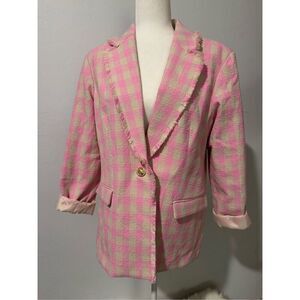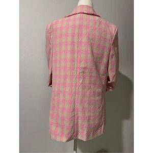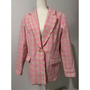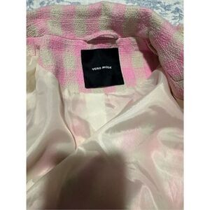 Vera Moda Bree kae check tweed blazer pink cream oversized size 6 no stains or rips front pocket one button front