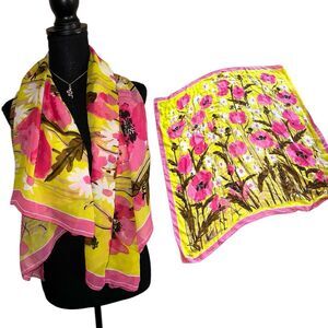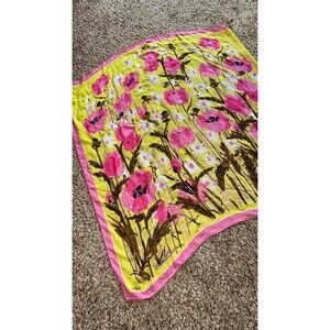 Vera Neumann large vintage Ladybug Pink Yellow Mod Floral Unique Scarf