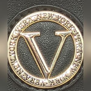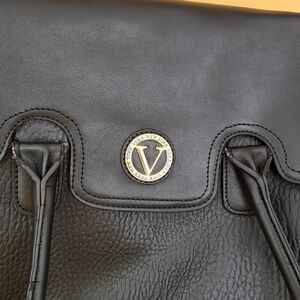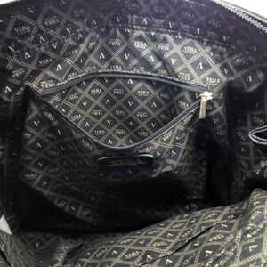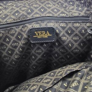 Vera New York Large Black Leather Tote/Handbag with Side Snap & Sig Logo Lining