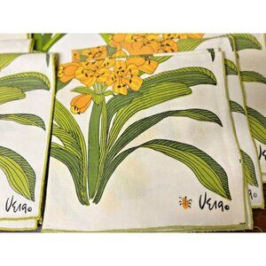 Vera Newmann 16 Piece Vinyl Yellow Floral Placemats & Napkin Vintage MCM