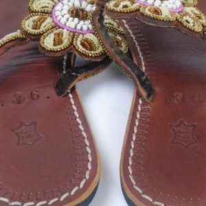 Vera Pella Beaded Sandals Size 5.5 Condition: Pre-owned in like new condition Material: Leather