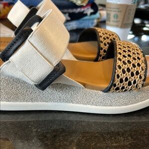 Vera Pelle Cream and Black Contemporary Sandals