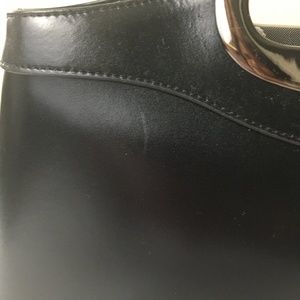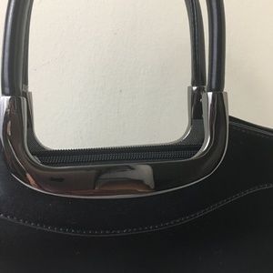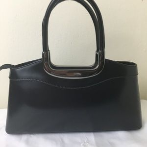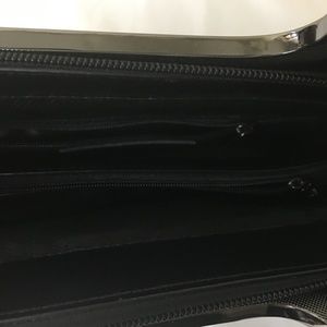 Top zipper closure, divided compartments with single zip pocket. 11.5”h, 12”w, 3”depth.