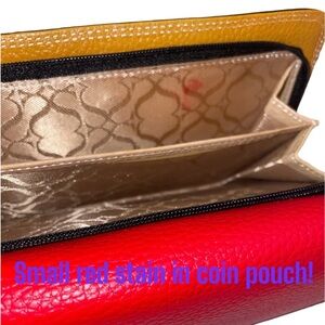Wallet with zippered Coin purse and bill holder. HAS SMALL RED STAIN HIDDEN IN ZIPPERED COIN POUCH!