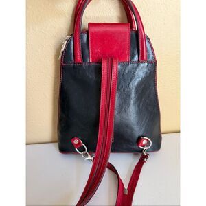 Vera Pelle Italian Leather Backpack Purse Black & Red Made in Italy