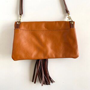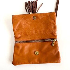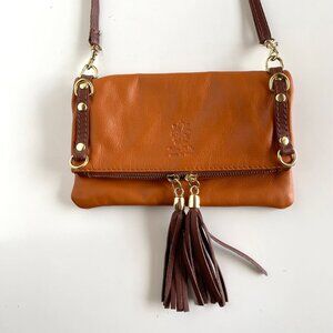 Vera Pelle Italian Leather Wristlet Crossbody Bag Clutch Purse Ochre