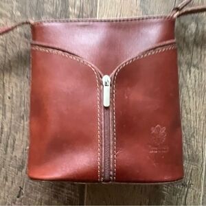 Vera Pelle Italy Small Brown Leather Zip Front Crossbody Bag, 7.5" x7.5"