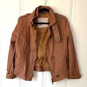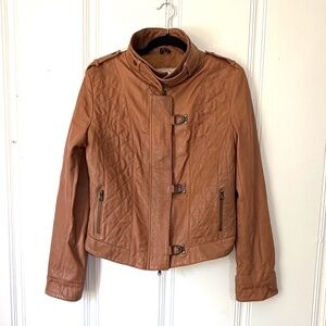 Stylish tan leather jacket from Vera Pelle in Italy. The kind of jacket that just gets better as you wear it. Perfect for fall.