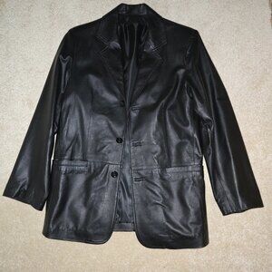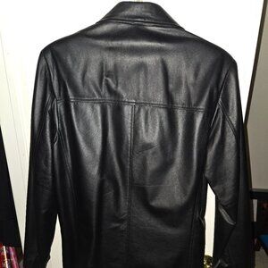 Vera Pelle Men's Black Leather 3 Button Blazer Size 46 Excellent Used Condition