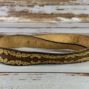 Vera Pelle Mens Leather Maltese Cross Belt Crystals Amber Buckle Italia 32”
