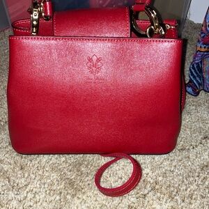 Vera Pelle Red Leather Satchel with Gold Hardware