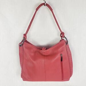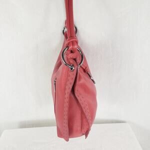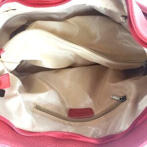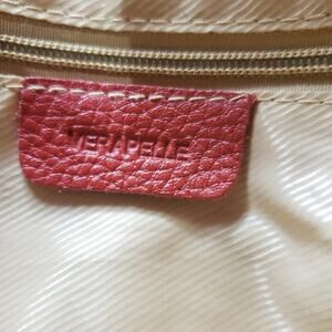 Vera Pelle Shoulder Bag Large Red Pebble Leather Purse with Ring and Stitch Detail. Features 1 outer sip pocket, full top zip and many interior pockets