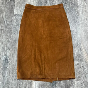 Beautiful and rare vintage Vera Pelle skirt. 100% tanned Italian leather. Fully lined with a back zip and button closure. Small mark on front shown in photos. Italian size 42 / US size 6.