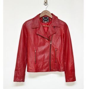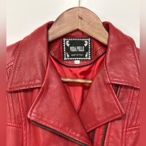 Vera Pelle Red Leather Jacket Biker Moto Size Small