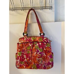 Vera Shoulder Tote Pink Red Roses 14x11.5" Defected Handle
