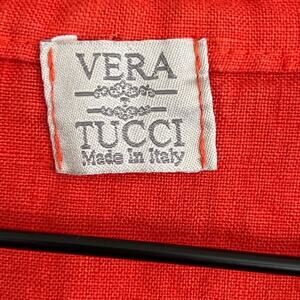 Vera Tucci Made in Italy 100% Linen Short Sleeve V-Neck Popover Dress Orange