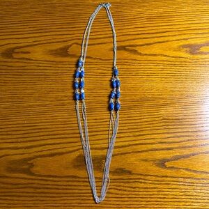 Vera Wang 18” silver necklace with blue, diamond looking gems on either side