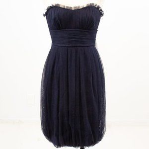Vera Wang 4 Corset Strapless Tulle Midi Dress Blue