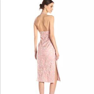 Vera Wang Asymmetric Sequin Lace Blush Midi Dress