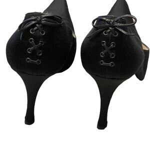 Vera Wang Authentic Lace Up Back Satin Pumps Pointed Toe Black Size 8