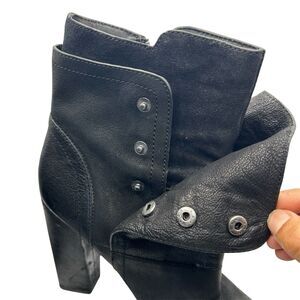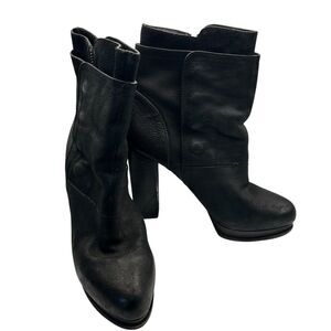 Vera Wang Black Marilyn Platform Booties Leather Chunky Boots Biker Size 8.5 M
