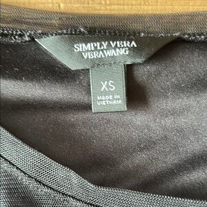 This elegant Vera Wang blouse features a sophisticated black color with charming smocked and ruffled details. The long sleeves add a touch of refinement, making it a versatile piece for any occasion. Crafted from a soft, stretchy fabric, it ensures both comfort and style.