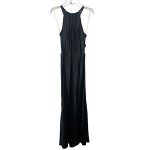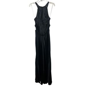 Vera Wang Black Satin Sleeveless Sequin Neck Keyhole Back Evening Maxi Gown 8