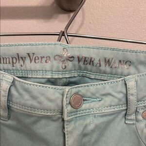 Experience the elegance of Vera Wang with these pastel blue skinny ankle jeans, perfect for a timeless and versatile look. Crafted with a comfortable fit and subtle denim texture, they are an essential addition to any casual wardrobe. Elevate your style with these classic jeans that seamlessly blend sophistication and everyday wear.