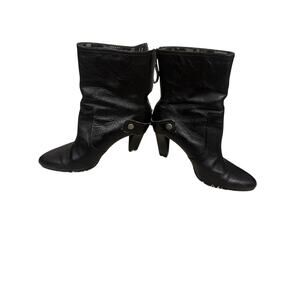 comfortable for a tall boot. Back strap for a cool look! There are signs of wear on both straps. Please see photos. There are signs of wear inside… please see photos. Perfect ankle boot for the season! Sexy with Leggings.
