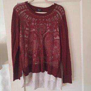 Vera Wang Burgundy Lace Sweater