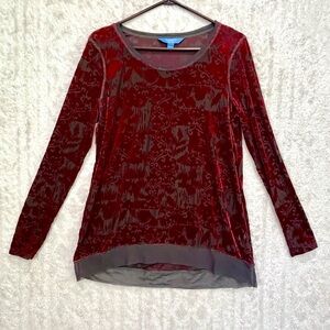 Vera Wang Burgundy Velvet Burnout Tunic Top Sz L Simply Vera Wimsigoth Whitchy