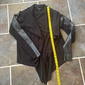 Vera Wang Simply Open Cardigan Womens XS Black Faux Leather Sleeve Patch